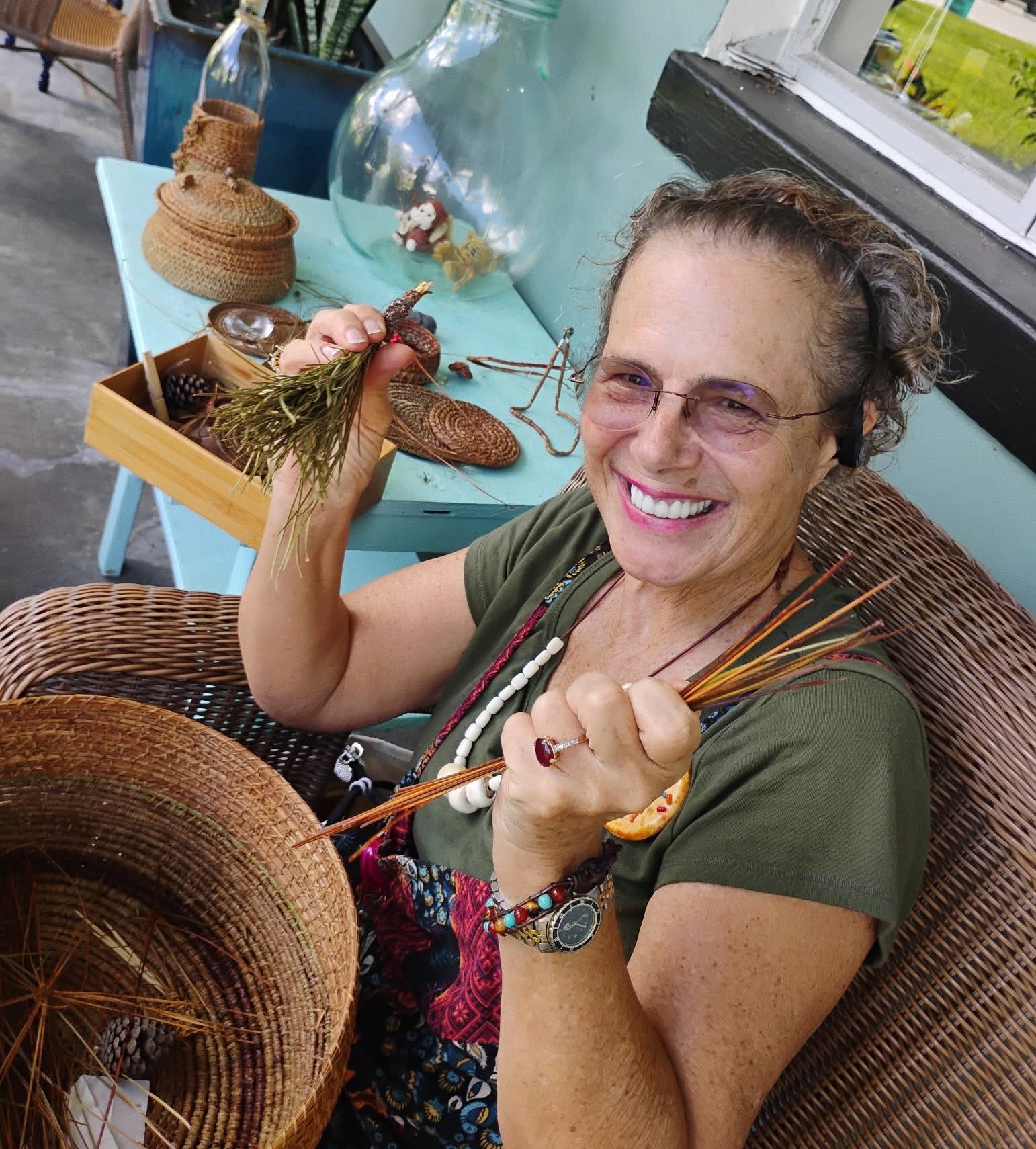 You can purchase my needle baskets & hats at the Rainbow Springs Art Center, in Dunnellon, FL.