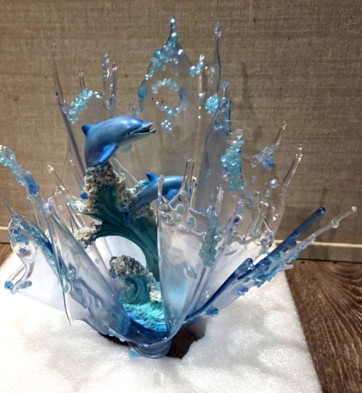 Dolphin Splash - lit sculpture