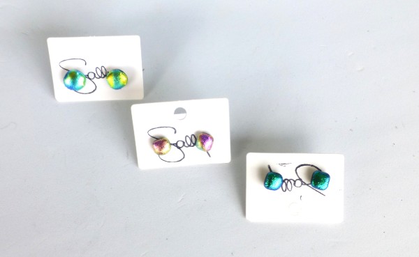 These are Signature pieces, stunningly beetle-like iridescent studs that lift up our mood and our outfits.